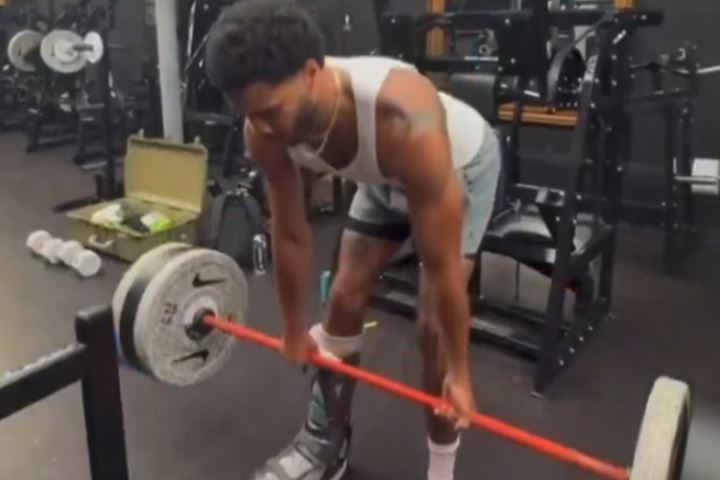 够拼的!塔图姆恢复上肢力量训练 脚上还踩着保护靴呢